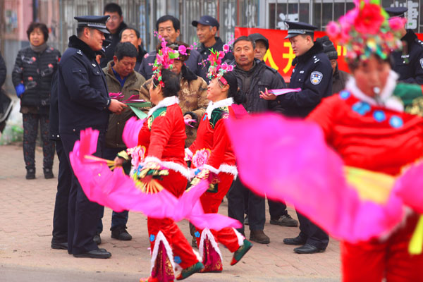 12月24日,東港市公安局新農(nóng)派出所組織“大秧歌法制服務(wù)隊(duì)”在轄區(qū)開展涉危、涉爆、消防等宣傳活動(dòng),使廣大群眾增強(qiáng)安全和守法的意識(shí)。