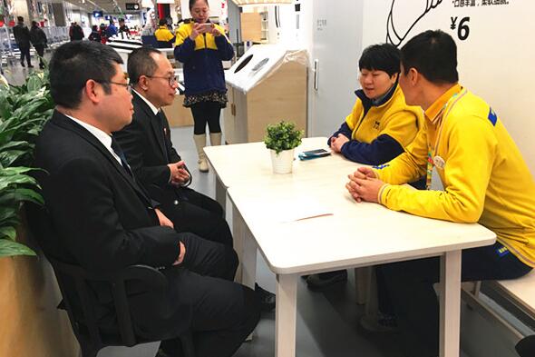 近日,沈陽市鐵西區(qū)人民法院民一庭庭長陳言、副庭長喜延峰帶隊到宜家沈陽商場進行走訪調(diào)研,就食品安全和消費者權益保護等相關問題與商場負責人進行座談。