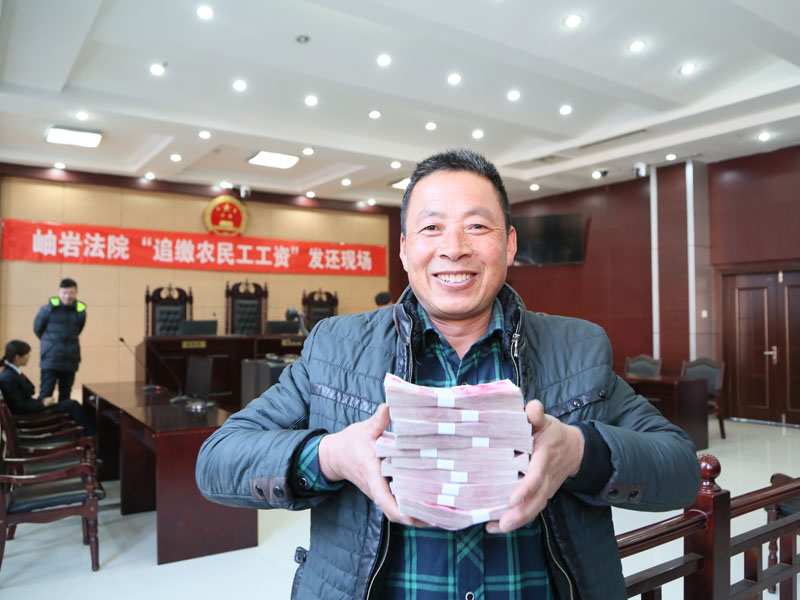 遼寧長(zhǎng)安網(wǎng)訊 一張張樸實(shí)的臉洋溢著樸實(shí)的笑容,一雙雙長(zhǎng)著老繭的手?jǐn)?shù)著本該屬于自己的血汗錢?!袄现毂慌辛?,我們的錢有著落了?!?月12日,百余名農(nóng)民工高興地來到岫巖滿族自治縣人民法院刑事審判庭,取回了包工頭拖欠他們好幾年的工資。