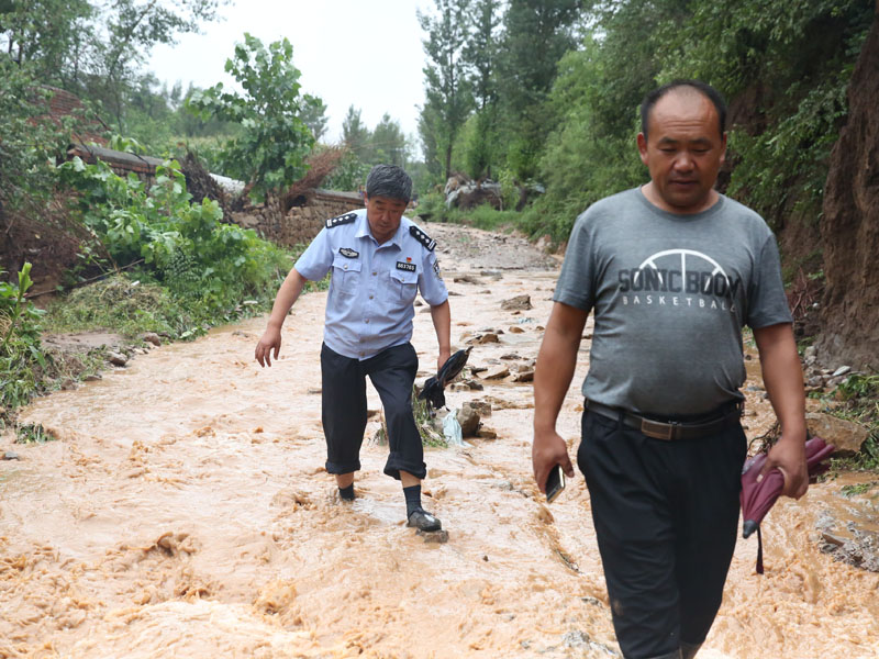 2017年8月,李可榮(左)到喀左縣羊角溝鄉(xiāng)搶險救災(zāi)
