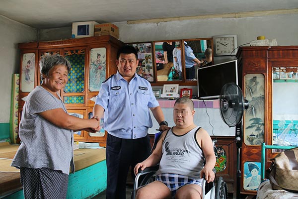 在沈陽市公安機(jī)關(guān)開展“走基層、聯(lián)萬家”愛民主題實踐活動中,沈陽市公安局治安管理局專案大隊大隊長馬賽時刻把聯(lián)系對象放在心上,幫扶貧困殘疾人孟某一家,得到群眾拍手稱贊。