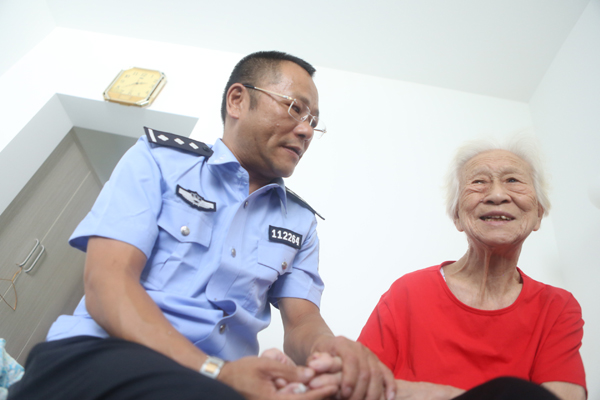 由于最近派出所事務(wù)比較繁忙,張?zhí)熘覜](méi)能及時(shí)去看望申惠敏老人,老人鬧起了小孩兒脾氣,張?zhí)熘医o老人打電話也不接,無(wú)奈,張?zhí)熘衣?lián)系上社區(qū)書(shū)記幫助照料一下老人。中秋節(jié)前夕,記者隨張?zhí)熘規(guī)е?、月餅去看望老人,用鏡頭記錄下老人從冷漠到開(kāi)心的情景。