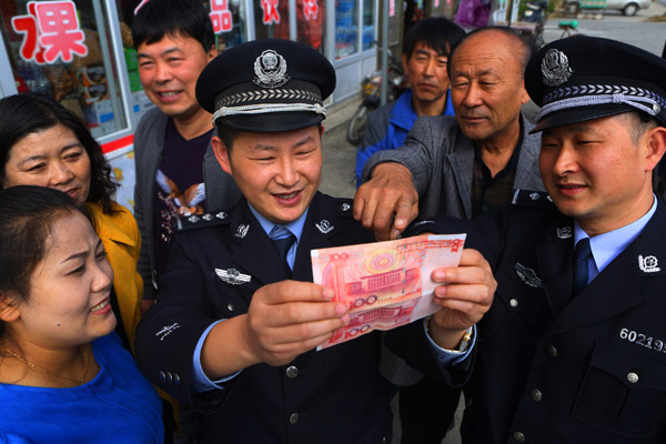 日前,東港市公安局北井子派出所民警在轄區(qū)開(kāi)展識(shí)假幣宣傳活動(dòng),民警通過(guò)將收繳的假幣和人民幣對(duì)比的方式,教廣大群眾辨別假幣的基本知識(shí),以預(yù)防上當(dāng)受騙。
