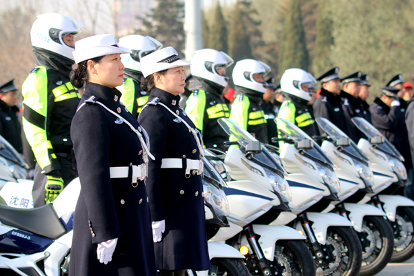 11月13日,在沈陽市公安局舉行的“整頓交通秩序、規(guī)范駕駛行為”專項整治行動啟動儀式上,“藍(lán)盾騎警隊”整裝待發(fā)。這支由70名警察、30名輔警組成的全新公安戰(zhàn)線尖兵隊伍,正式在沈陽道路交通管理舞臺亮相。