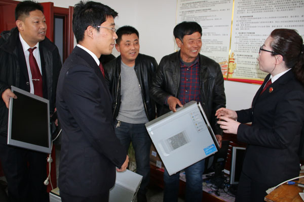 丹東市人民檢察院扶貧工作隊(duì)于去年進(jìn)駐寬甸滿族自治縣灌水鎮(zhèn)東岔村以來,積極協(xié)助村里解決工作難題。近日,為了幫助村委會(huì)解決辦公之需,該院領(lǐng)導(dǎo)安排技術(shù)部門配置了7臺(tái)電腦,由扶貧工作隊(duì)員林志剛、石宏等頂風(fēng)冒雪送到村里。