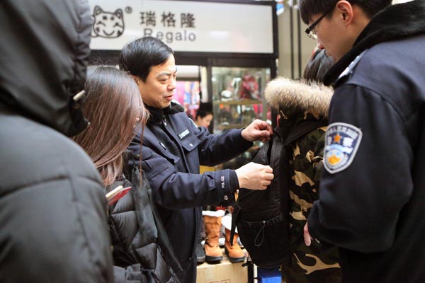 隨著平安夜、圣誕節(jié)、新年的臨近,商場、市場購物人數(shù)日益增多,扒手活動(dòng)也更加頻繁,扒竊案件呈高發(fā)態(tài)勢,沈陽市公安局沈河分局針對(duì)轄區(qū)大型商場、市場集中,數(shù)量較多的實(shí)際情況,增派警力,抽調(diào)反扒大隊(duì)的精兵強(qiáng)將,加大打擊力度,有效地遏制了案件的發(fā)生。同時(shí),在商場市場人群集中的時(shí)間段,加強(qiáng)宣傳,由民警為群眾做示范、演示扒手作案過程,教群眾如何注意防范,增強(qiáng)安全防范意識(shí),確保人身財(cái)產(chǎn)安全。