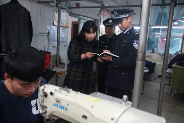 岫巖滿(mǎn)族自治縣公安局前營(yíng)子派出所全面落實(shí)報(bào)警求助首接責(zé)任制、群眾辦事一次告知制、回訪報(bào)警人制等制度,并大力推行“預(yù)約服務(wù)”“綠色通道”和“一站式”等服務(wù)模式。打通服務(wù)群眾的“最后一公里”。圖為前營(yíng)子派出所民警在企業(yè)走訪。