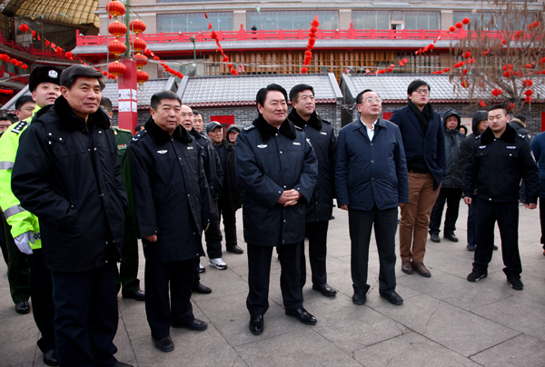 2月10日下午,沈陽市副市長、市公安局局長劉國秀先后到北市場廟會、關(guān)東影視城盛京燈會等活動現(xiàn)場,檢查安保工作。