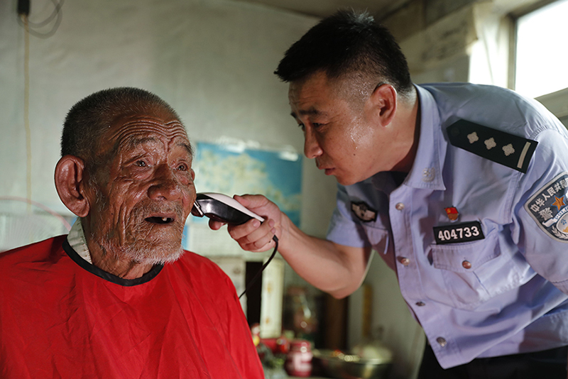 張宇航正在為轄區(qū)內(nèi)的孤寡老人理發(fā)。