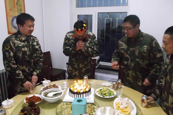 入伍12年來,王本慶有10個生日都是在部隊過的,今年的2月10日,農(nóng)歷正月十四,也是王本慶在邊防部隊過的最后一個生日。在單位食堂的生日宴上,領導為他定制了生日蛋糕,親自做了一桌豐盛的飯菜,戰(zhàn)友們共同為他唱了生日歌,為他過了一個難忘而又有意義的生日。