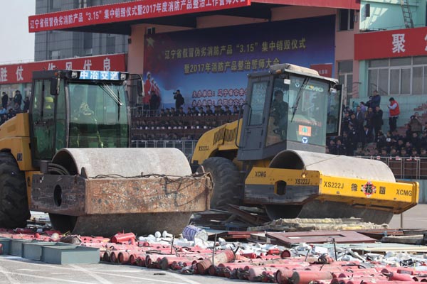 為有效震懾制售假冒偽劣消防產(chǎn)品違法行為,3月13日,我省公安消防部門在沈陽市公安消防支隊特勤大隊舉行了全省假冒偽劣消防產(chǎn)品“3·15”集中銷毀儀式。省公安廳、消防總隊、經(jīng)偵總隊、食藥偵總隊、質(zhì)監(jiān)局、工商局有關(guān)人員,以及來自全省14個市的150余家消防產(chǎn)品生產(chǎn)、銷售、維保、使用單位負責人代表參加了活動。