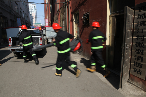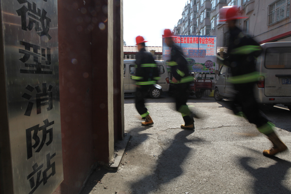 警情來了,志愿消防員從他們的微型消防站迅速奔赴火場(chǎng)