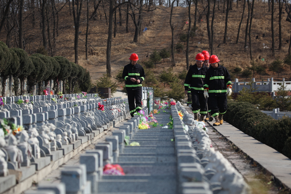 清明節(jié)前,隊(duì)員們?cè)诠惯M(jìn)行巡查排除隱患