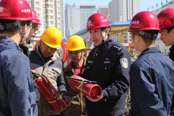 日前,沈陽市公安局鐵西分局興華派出所民警走進(jìn)轄區(qū)建筑工地排查消防火災(zāi)隱患。民警在轄區(qū)工地現(xiàn)場講解滅火器材的使用方法。