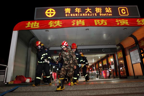 為了破解城市軌道交通滅火與應急救援難題,進一步規(guī)范沈陽市地下軌道交通火災事故應急處置程序,提升相關應急聯(lián)動隊伍處置軌道交通火災事故的協(xié)同作戰(zhàn)能力。在前一天地鐵最末一班車停運后,4月29日零時30分,沈陽市公安、消防、交通、醫(yī)療、電力、通信、水務集團等部門在沈陽地鐵青年大街站舉行了應急力量聯(lián)合參與的地鐵滅火救援聯(lián)合演習,此次演習共出動36臺消防車及公安、醫(yī)療等社會聯(lián)動車輛16臺,參與演習的消防官兵143名,“被困人員”150名,是沈陽地鐵正式運營以來規(guī)模最大的一次聯(lián)合滅火救援演習。