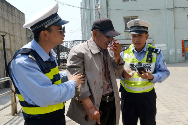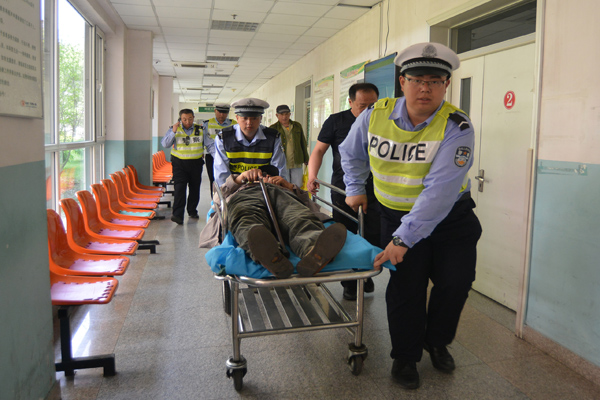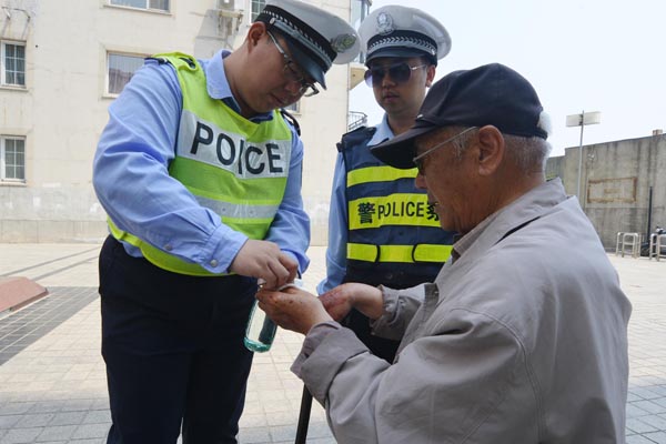 日前,丹東市公安局交警支隊元寶大隊民警在丹東市濱江中路8號壩門巡邏時,發(fā)現(xiàn)江邊一位老人鼻孔流血不止,四人急忙下車攙扶住老人,并用紙巾幫老人進行止血。當?shù)弥先私衲暌?4歲時,民警立即與其親屬取得聯(lián)系。隨后,民警又用警車載著老人到醫(yī)院,并陪伴老人做進一步檢查,當?shù)弥先藳]有危險時方離開醫(yī)院。記者跟隨民警用鏡頭記錄下整個救助全過程。