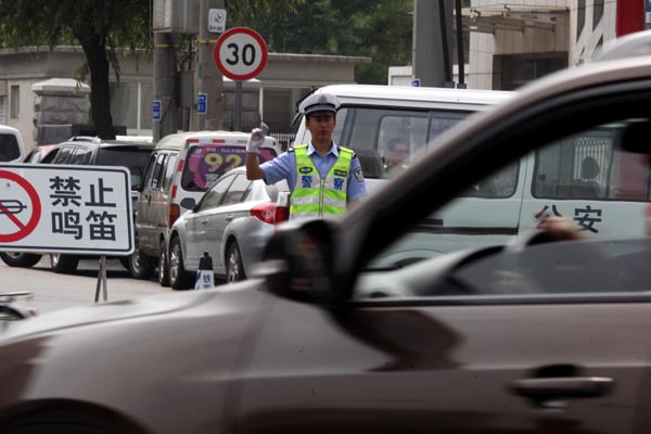 各考點(diǎn)外都有交警在疏導(dǎo)交通
