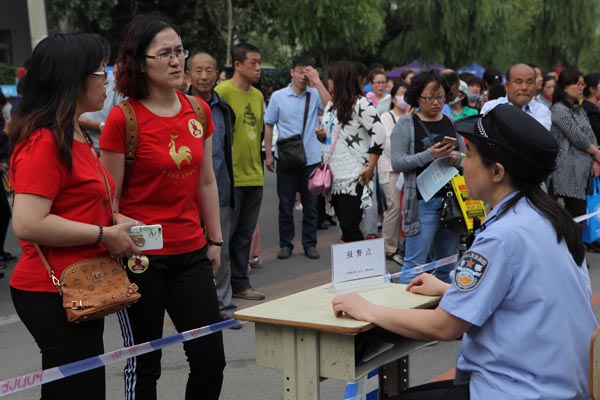 沈陽市公安局鐵西分局在轄區(qū)的每個(gè)考點(diǎn)設(shè)有報(bào)警點(diǎn),以解決考生及家長的應(yīng)急之需