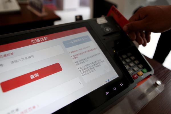 軟件園的企業(yè)員工在交通違法繳費(fèi)機(jī)上自助劃卡交款