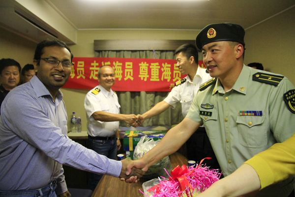 6月22日是第七個(gè)“世界海員日”,遼寧公安邊防總隊(duì)丹東港邊檢站官兵走進(jìn)海員、關(guān)注海員,與港區(qū)工作人員一同與外籍海員歡慶節(jié)日的到來(lái)。