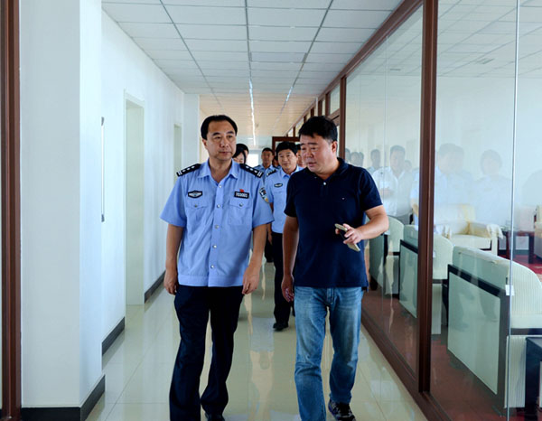 大石橋市公安局局長張軍(左)走訪盼盼集團(tuán)