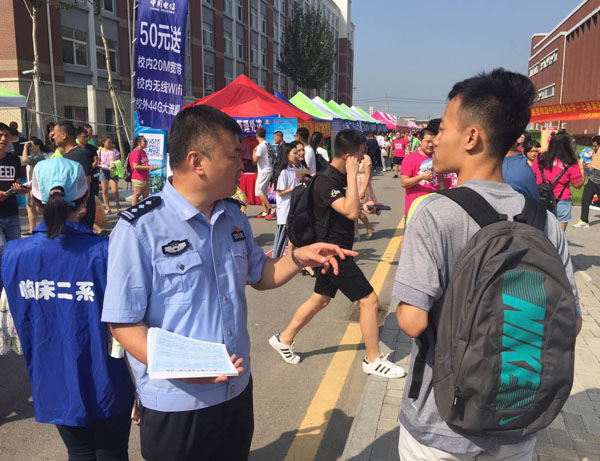8月20日,中國(guó)醫(yī)科大學(xué)迎來(lái)4000余名新生,沈陽(yáng)市公安局文保分局民警來(lái)到現(xiàn)場(chǎng),對(duì)入學(xué)新生開(kāi)展安全法治宣傳教育。結(jié)合新入學(xué)易發(fā)生的被騙、被盜等情況,講解了防范知識(shí)要點(diǎn)。