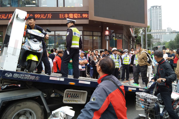 9月10日,沈陽市公安局交通警察局交警在沈陽市沈河區(qū)市府大路路口開展電動(dòng)車違法行為整治行動(dòng),對(duì)嚴(yán)重違法且不聽勸阻的電動(dòng)車車主依法對(duì)其車輛進(jìn)行暫扣處罰,過程中民警用執(zhí)法記錄儀記錄,嚴(yán)格文明執(zhí)法。