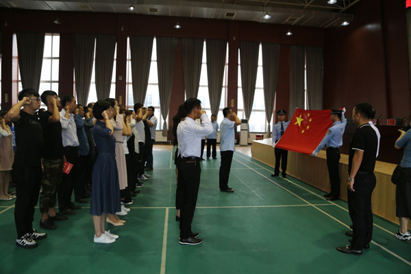 “我是中華人民共和國陪審員,堅(jiān)決擁護(hù)憲法,永遠(yuǎn)忠于法律,依法履行人民陪審員的職責(zé)……”9月8日,35名由岫巖滿族自治縣人大常委會(huì)任命的人民陪審員來到岫巖縣法院,在副院長朱長祥的帶領(lǐng)下向國旗莊嚴(yán)宣誓。