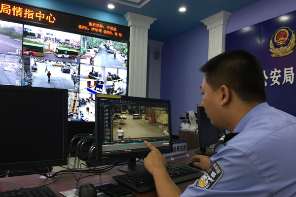 隨后,記者又來到站前公安分局警務(wù)指揮中心,在這里,民警從電腦里調(diào)出了一個多小時前記者在勤儉社區(qū)活動的情形。