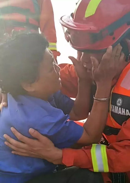 8月3日,在洪災(zāi)中獲救的受災(zāi)群眾面對(duì)消防官兵泣不成聲(視頻截圖)