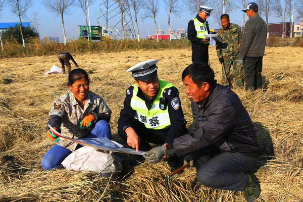 10月24日,東港市公安局交警大隊抓住開展“保秋收交通安全”宣傳活動之機,來到田間地頭向群眾宣講惠農(nóng)政策。