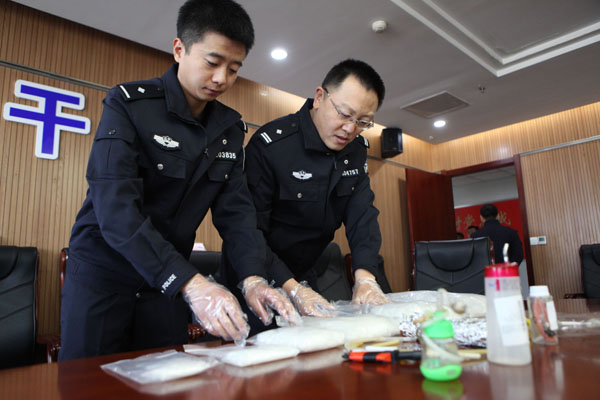 圖為11月9日,渾南公安分局民警在展示收繳的毒品。