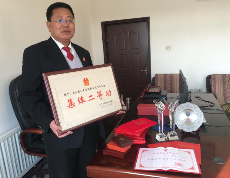“錦州好人”“全市十大杰出法官”⋯⋯黑山縣新立屯鎮(zhèn)人民法庭庭長吳國臣所獲得的榮譽可以擺滿一張桌子,而他選擇把這幾十份證書和獎杯鎖進柜子,除了這個柜子,這名老法官辦公室里只有三組老舊沙發(fā)和一個辦公桌。吳國臣說,自己不是不重視榮譽,只是不能抱著榮譽工作,只有安下心來工作才能對得起這些證書。